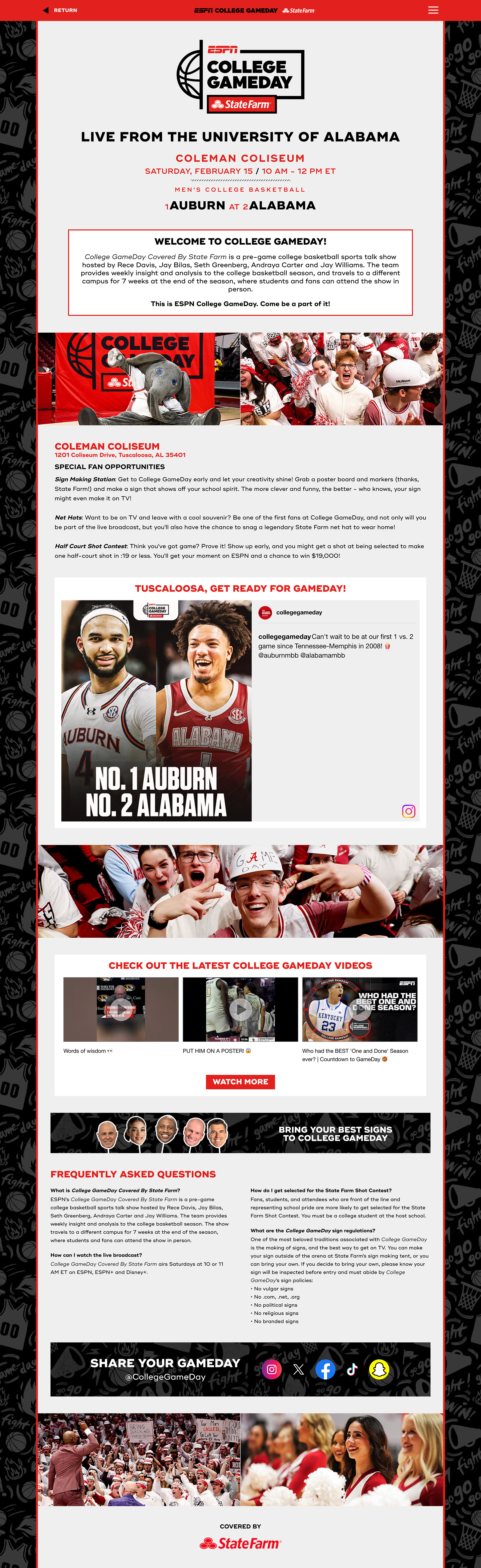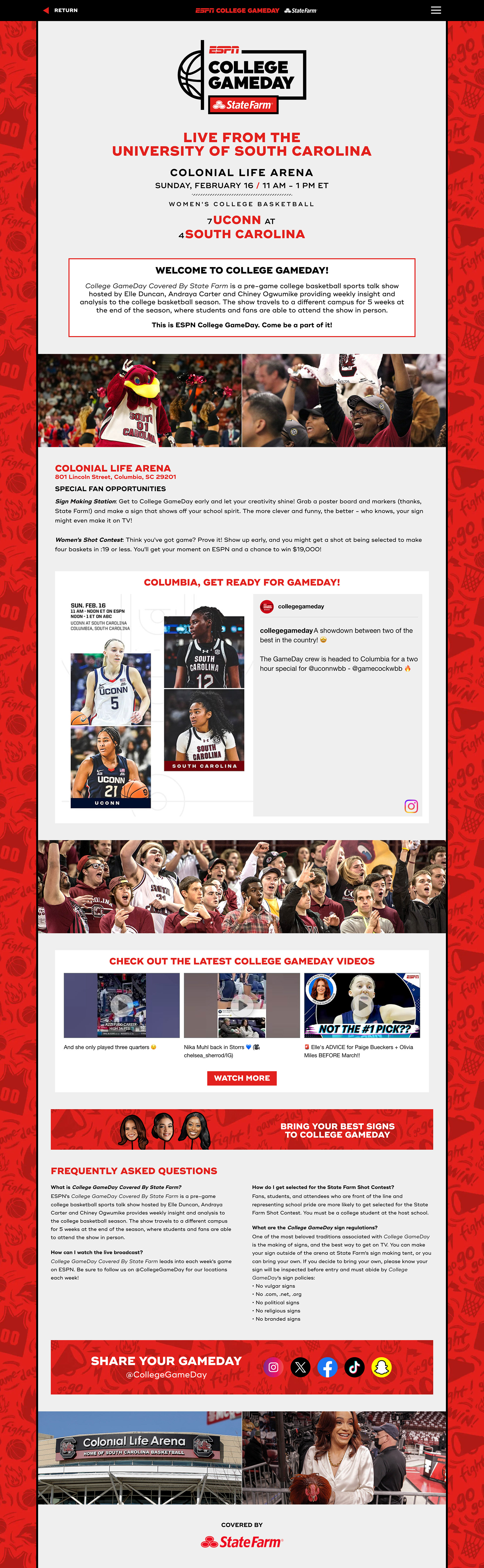Following the success of the College GameDay Football website, I was tasked with leading the design and implementation of a similar project for the 2025 season. Collaborating with brand managers and both internal and external development teams, we successfully launched dedicated Men’s and Women’s versions of the site, providing fans with weekly updates, location-specific content, matchup details, and other features.