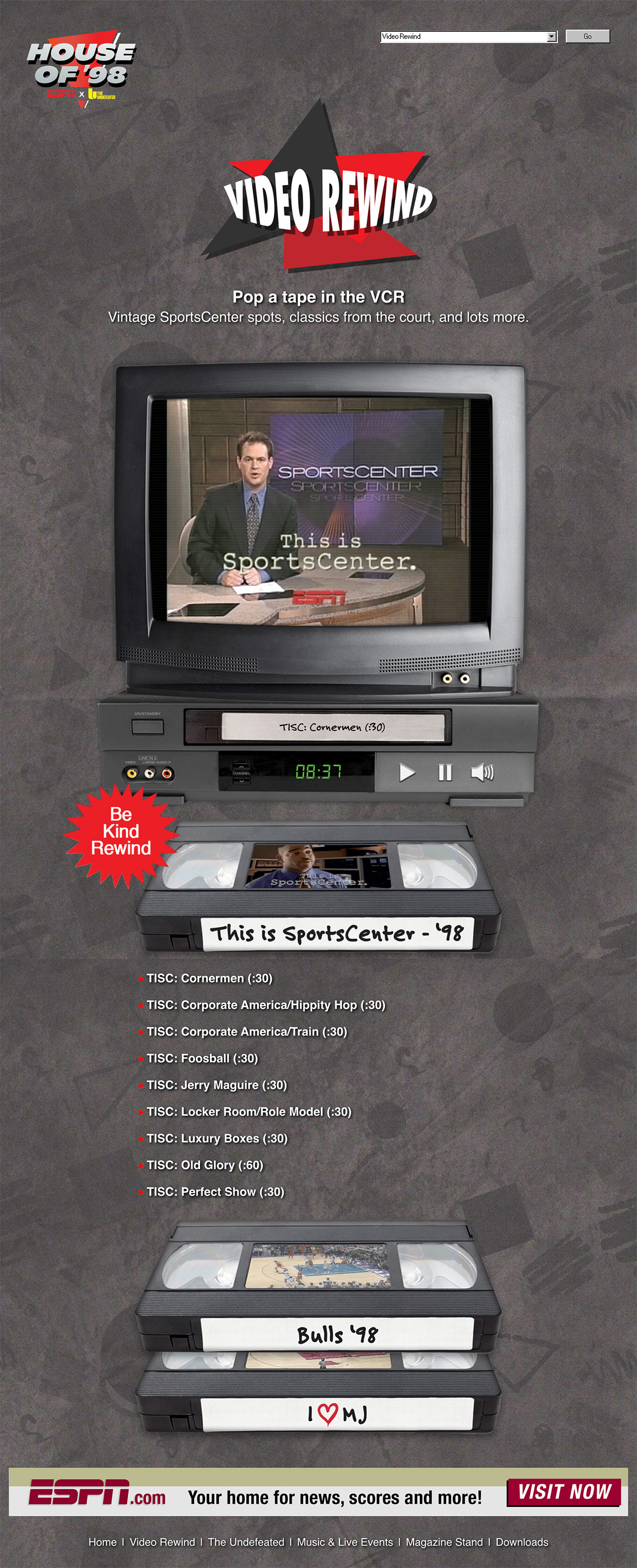 Collaborating with an external agency and internal developer, I served as Art Director and Designer on this award-winning microsite developed in conjunction with the acclaimed documentary series "The Last Dance". The site was styled to mimic one from the late-1990s, blending nostalgic design and content with modern responsive functionality. Features included an interactive video player, links to live streaming events, custom-designed downloadable graphics, and curated access to relevant news and classic 1998 magazine covers.