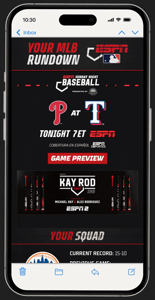 I was responsible for helping to elevate the MLB brand across a variety of digital platforms, ensuring consistent and engaging visual messaging. This included the design of on-air graphics, public relations templates, dynamic email campaigns, and a wide range of other digital deliverables.